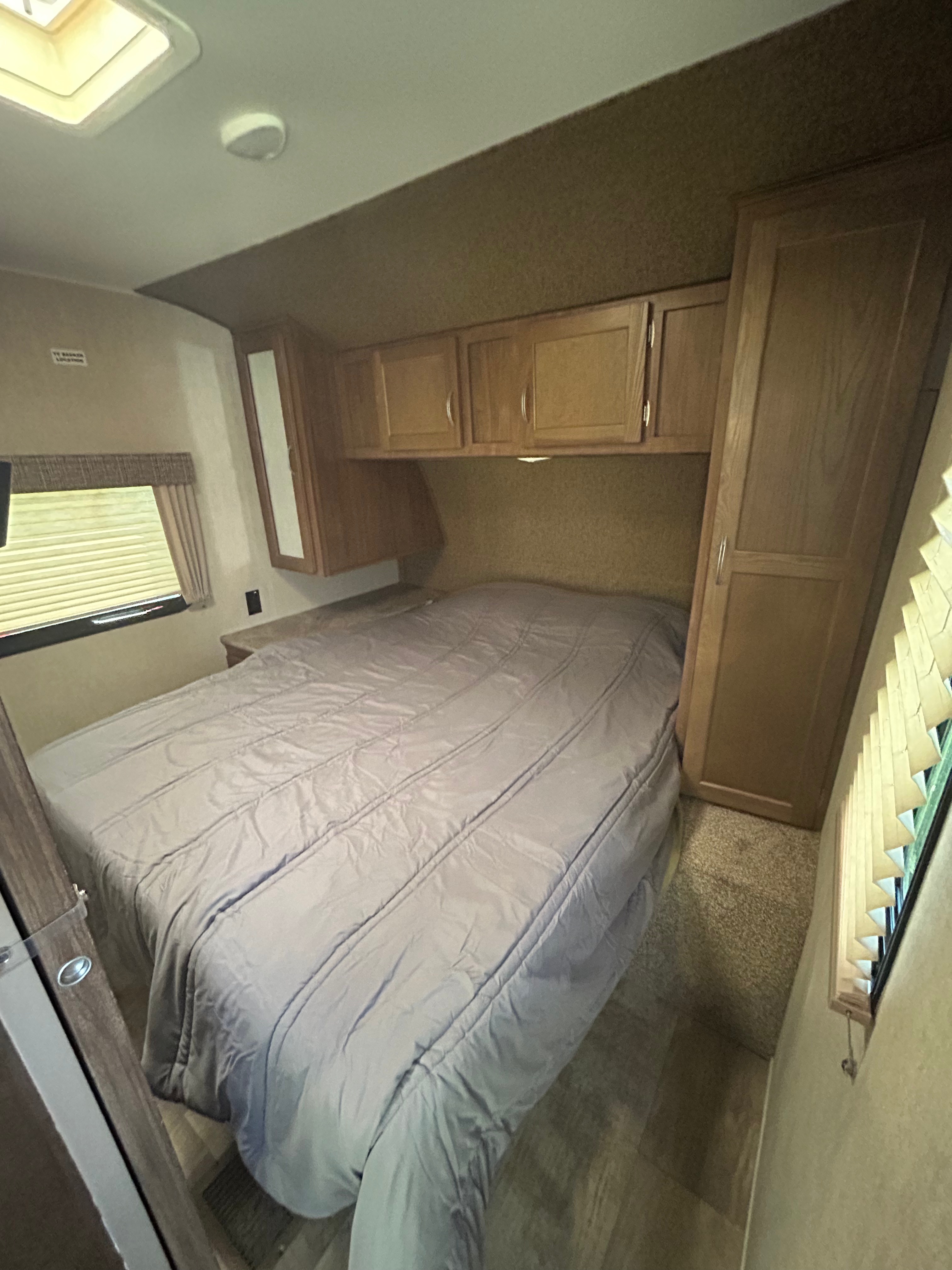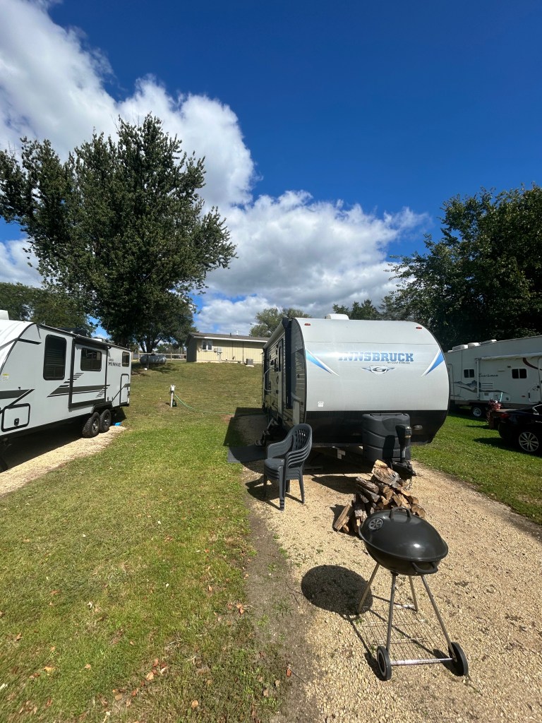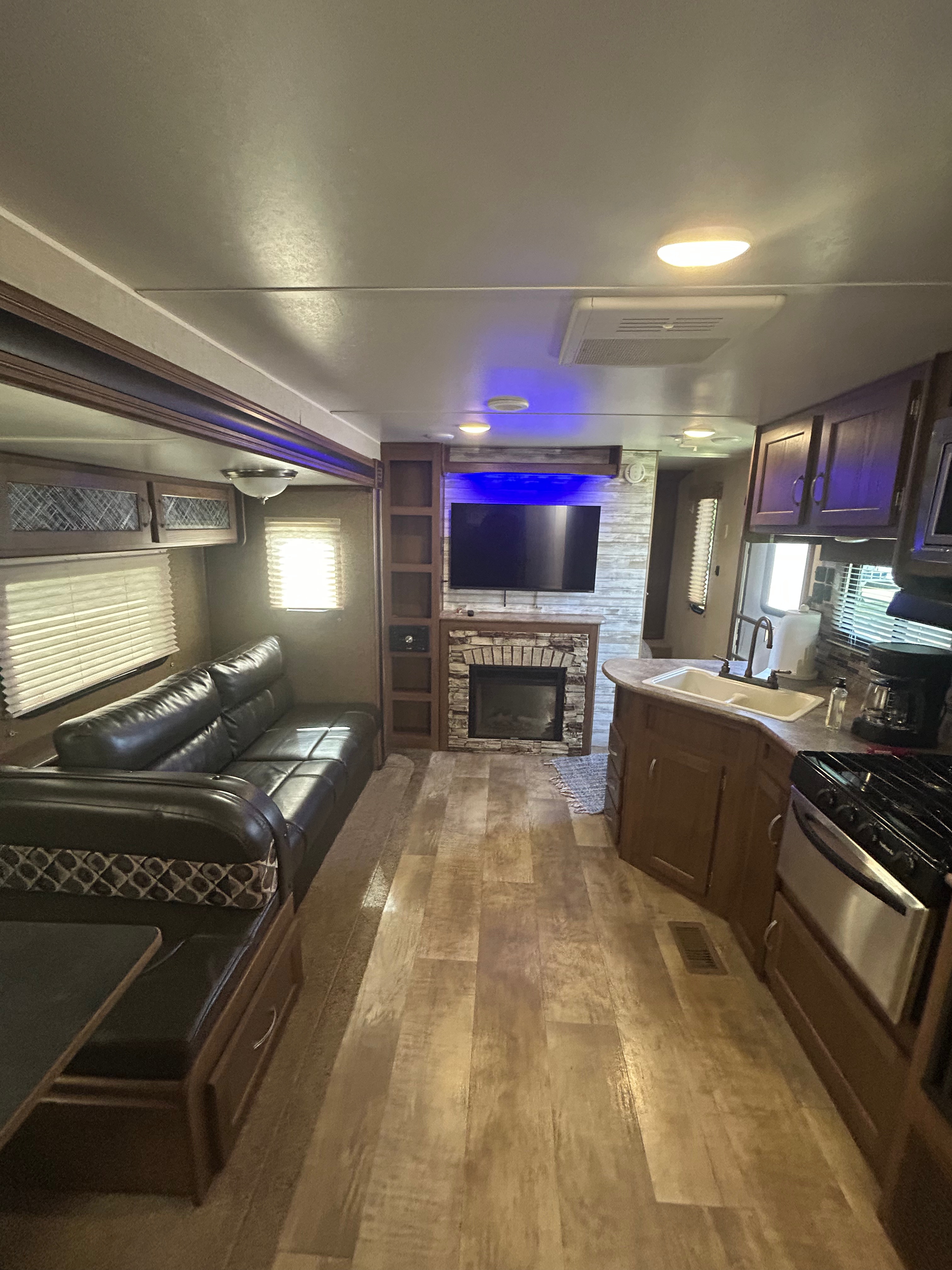 Come enjoy this riverfront paradise in our fully stocked camper! Can sleep 6 plus with a queen bed, full size bunk beds and a couch. The dinette also converts to a bed if needed. This camper is fully stocked with bedding, kitchen and bath towels and everything you should need in the kitchen including pots and pans, dishes, silverware, coffee pot, etc.